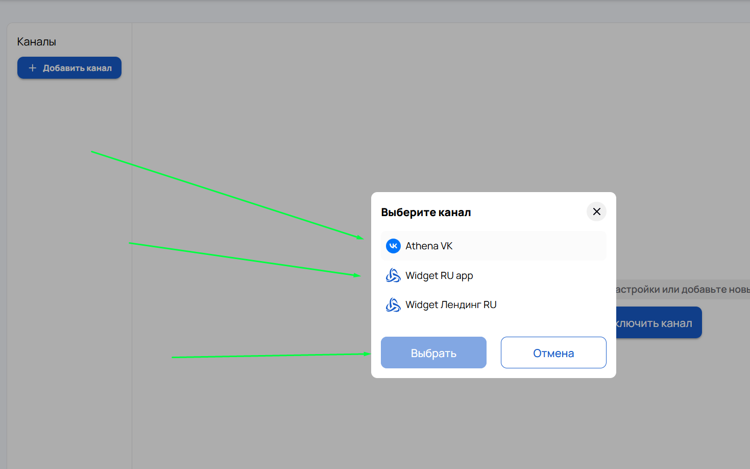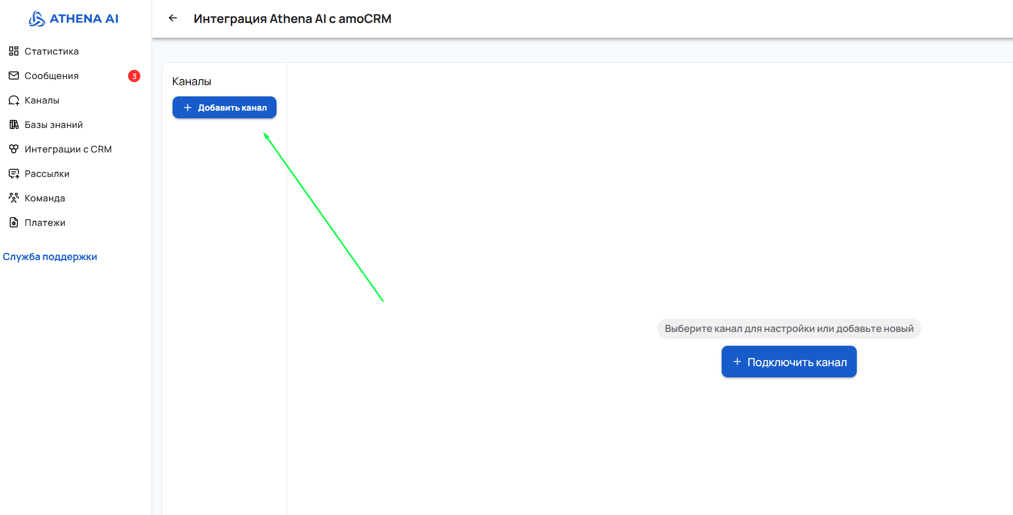 - Первоначальное подключение успешно. Теперь необходимо подключить канал для обработки обращений.