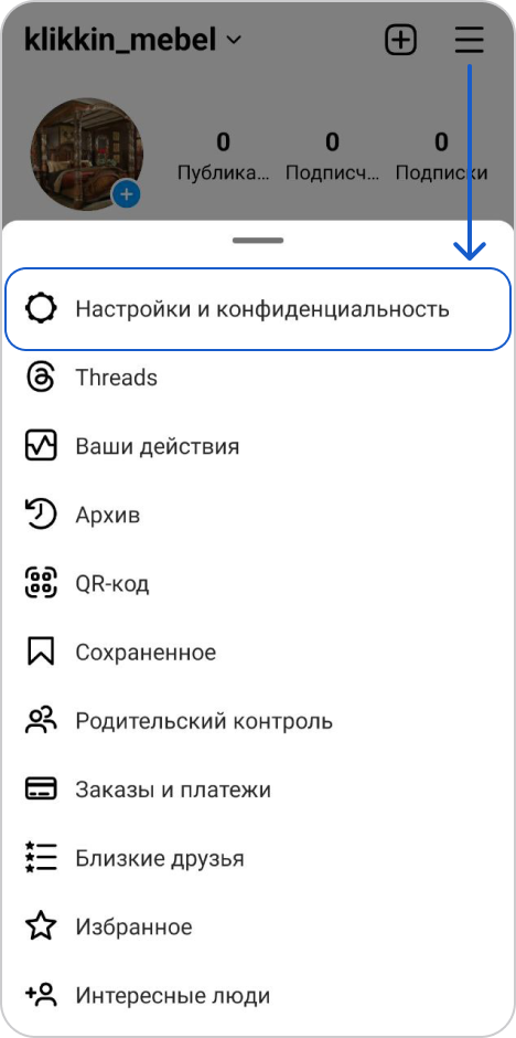 Go to your profile and click on the menu button. Select "Settings & Privacy"