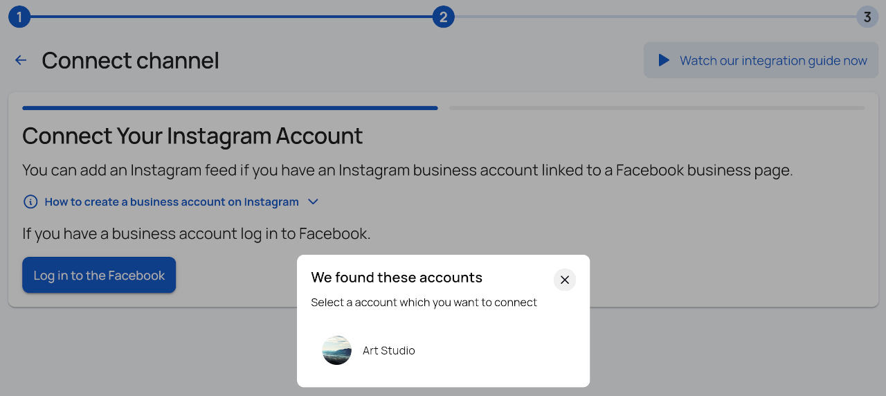 - Select the Instagram business account you want to add as a channel and click "Next."